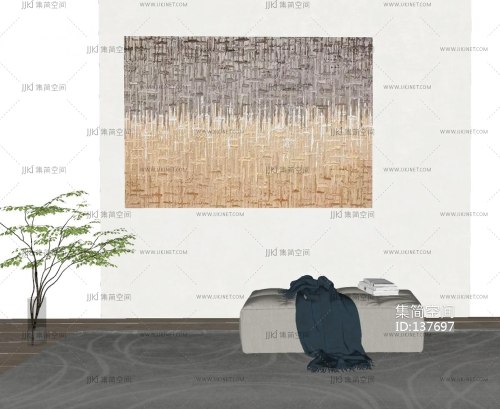 侘寂床尾凳沙发凳SU模型su草图模型下载