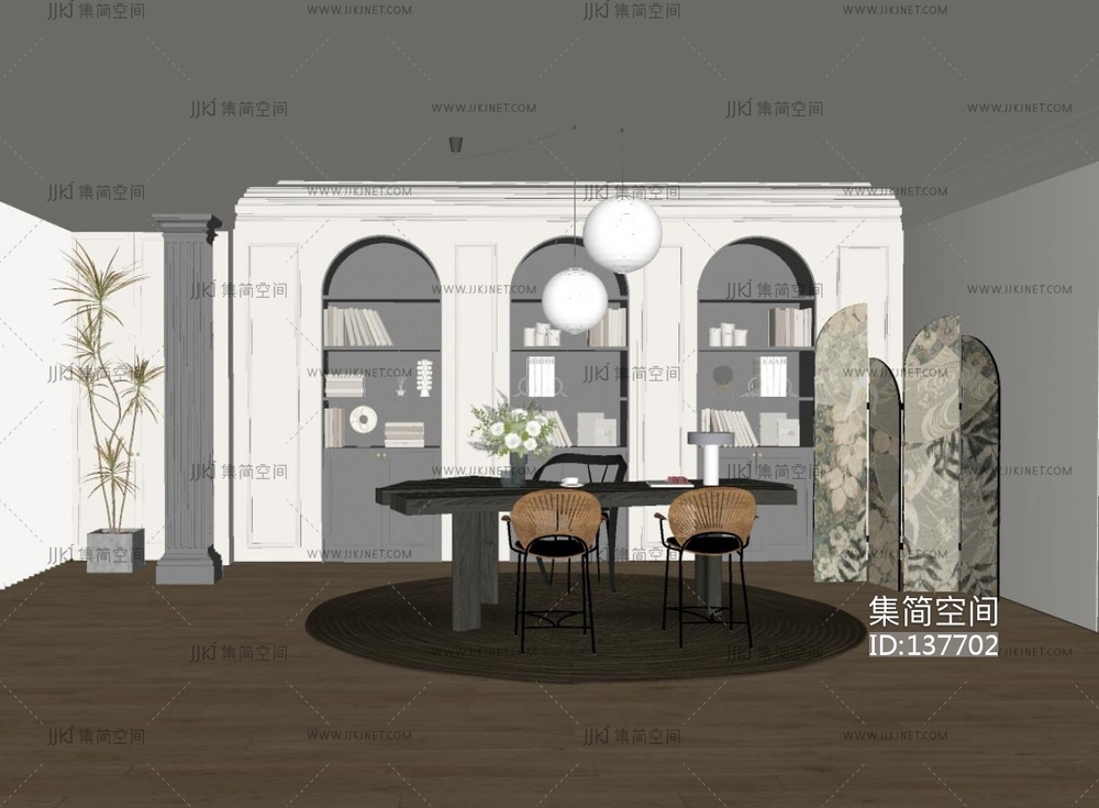 法式书房su模型 su草图模型下载 [模型ID:137702]