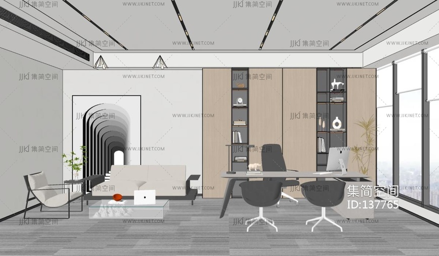 现代经理办公室SU模型 su草图模型下载 [模型ID:137765]