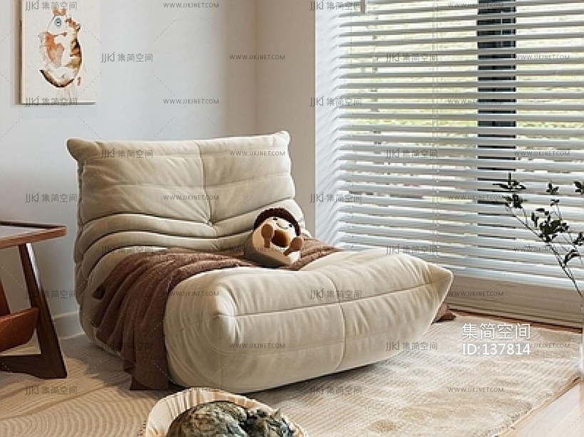 05现代懒人沙发_米灰色懒人沙发su模型su草图模型下载