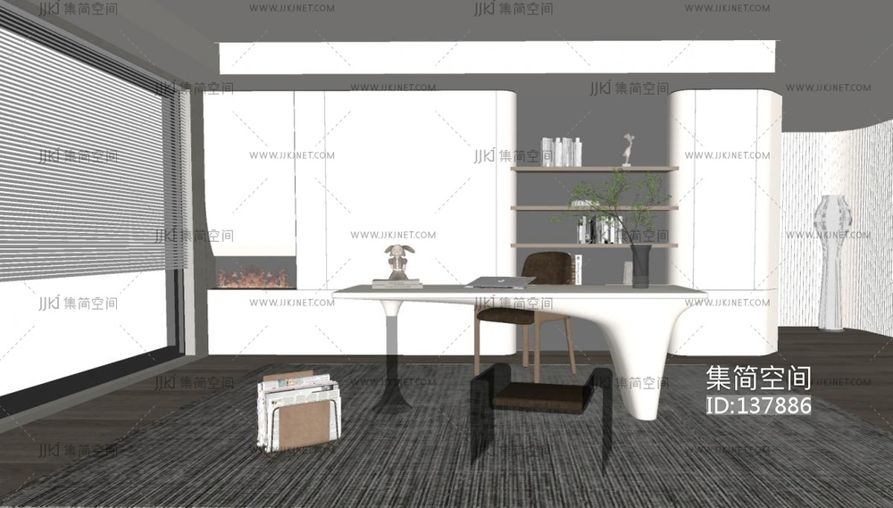现代书房su模型 su草图模型下载 [模型ID:137886]