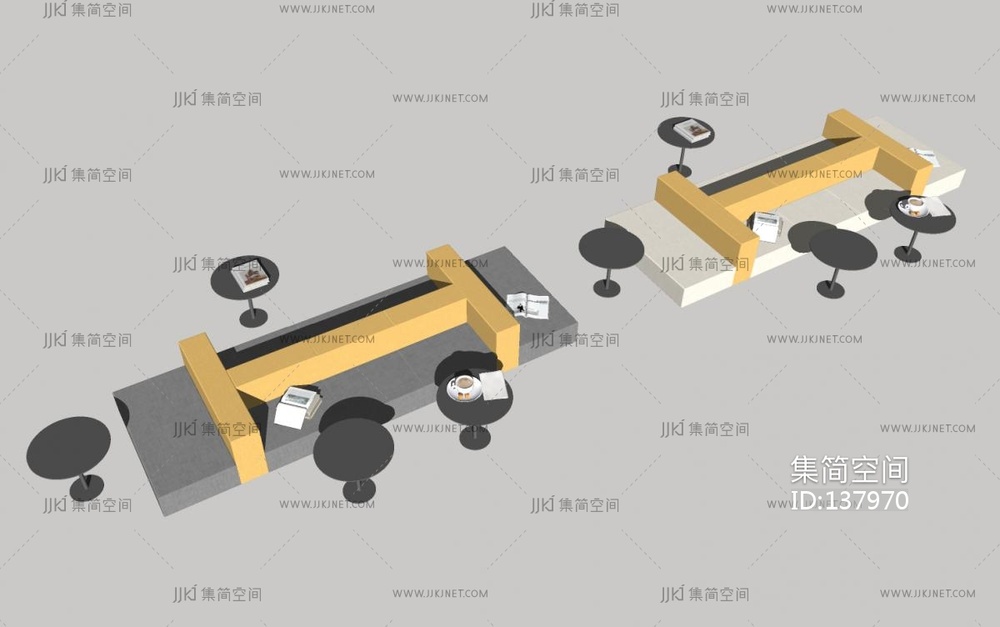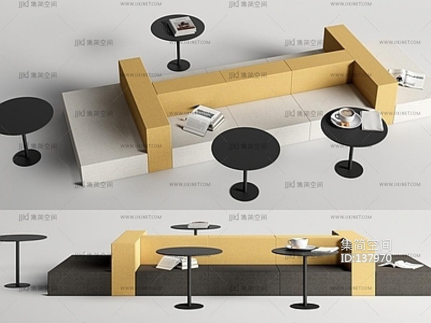现代卡座沙发,沙发区,公共座椅,小圆桌SU模型下载 su草图模型下载 [模型ID:137970]