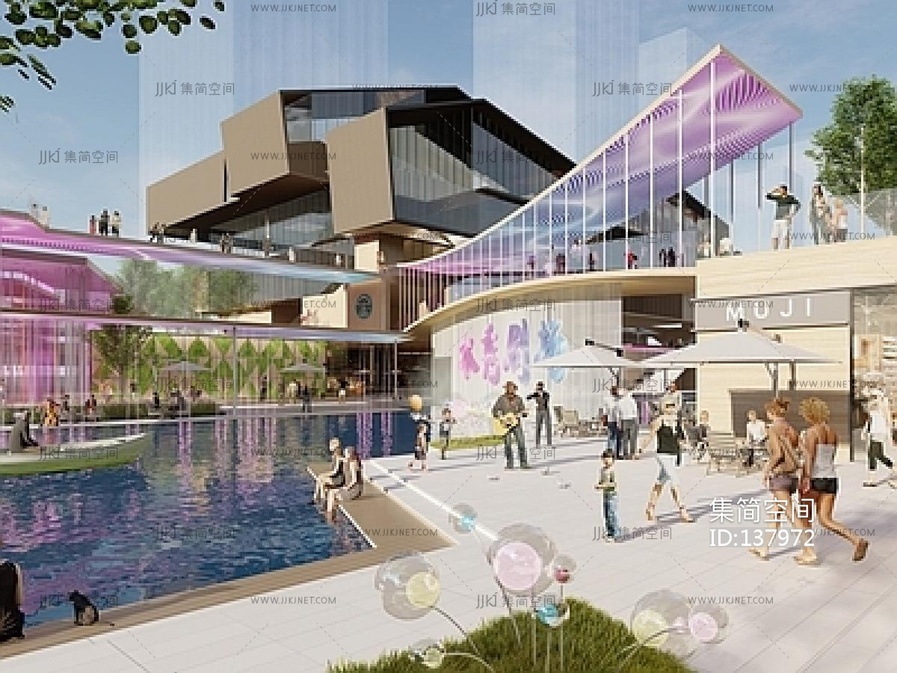 现代水街商业街_灯光秀 su草图模型下载 [模型ID:137972]