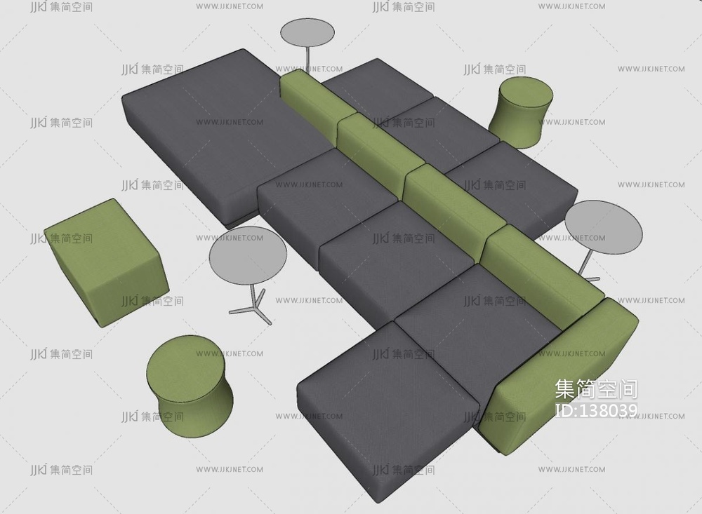 现代休闲办公沙发组合沙发区公共座椅su草图模型下载