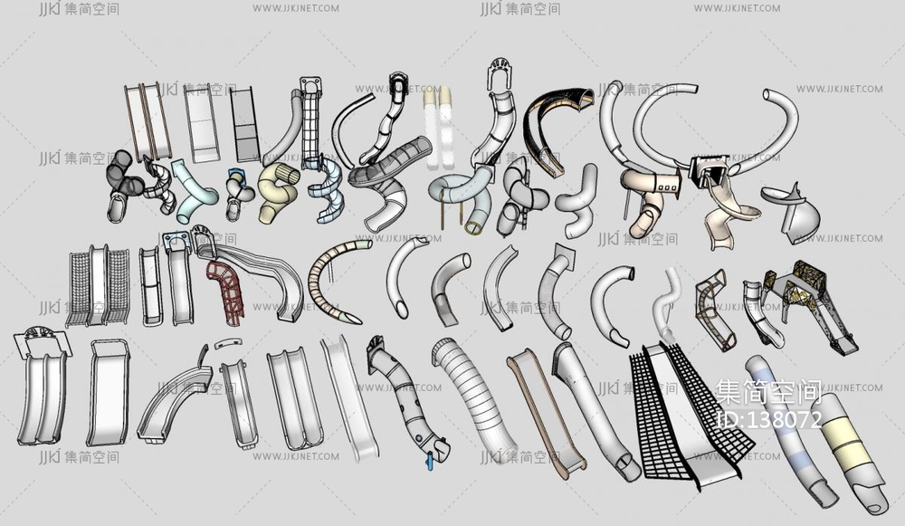 儿童器材_儿童游乐场_沙滩_淘气堡_滑梯su模型su草图模型下载