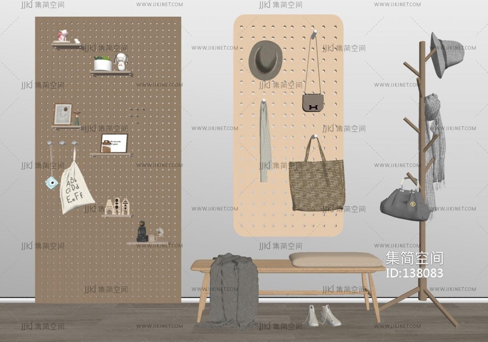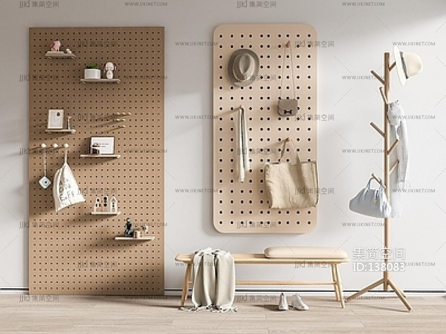 现代洞洞板_墙饰板_挂衣钩SU模型 (1) su草图模型下载