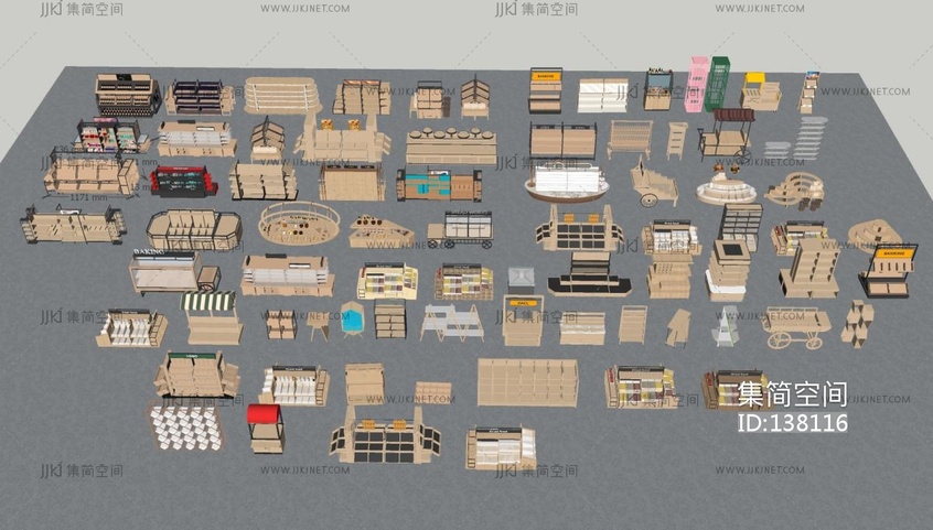 -现代货架_超市货架 su草图模型下载 [模型ID:138116]