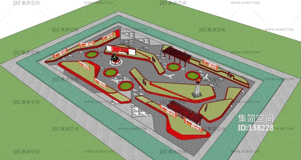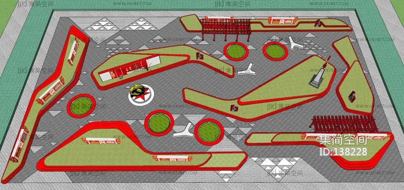 现代红色文化广场SU模型 su草图模型下载 [模型ID:138228]