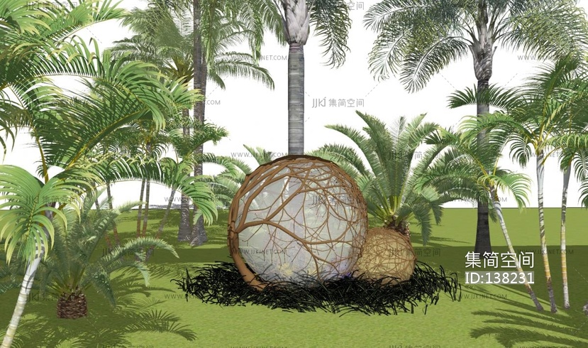 现代户外球型雕塑小品SU模型 su草图模型下载 [模型ID:138231]