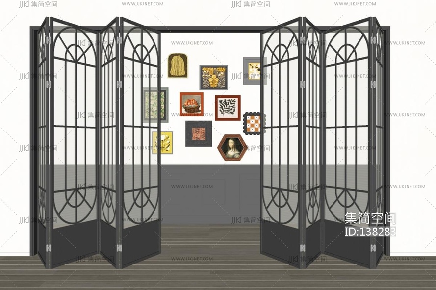 法式复古玻璃折叠门,推拉门SU模型 su草图模型下载 [模型ID:138283]