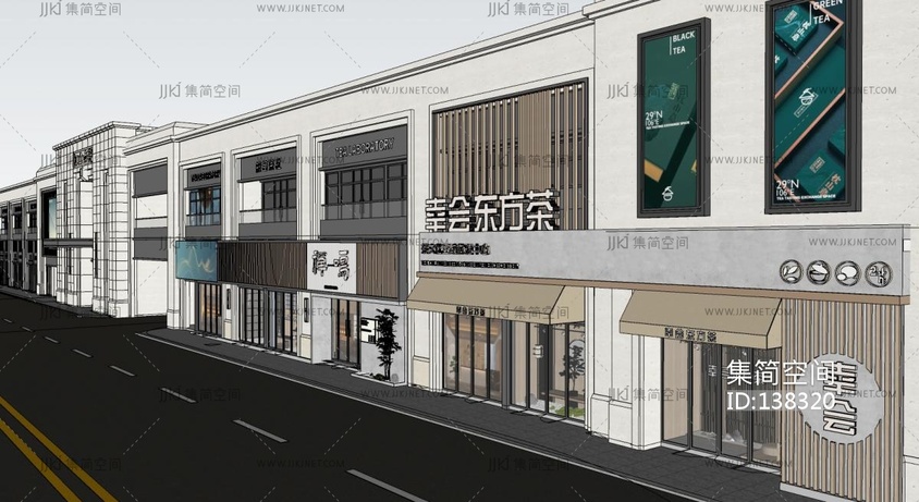 现代商业街SU模型 su草图模型下载 [模型ID:138320]