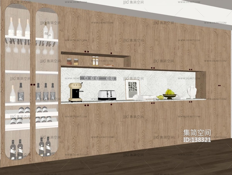 现代餐边柜,酒柜SU模型 su草图模型下载 [模型ID:138321]