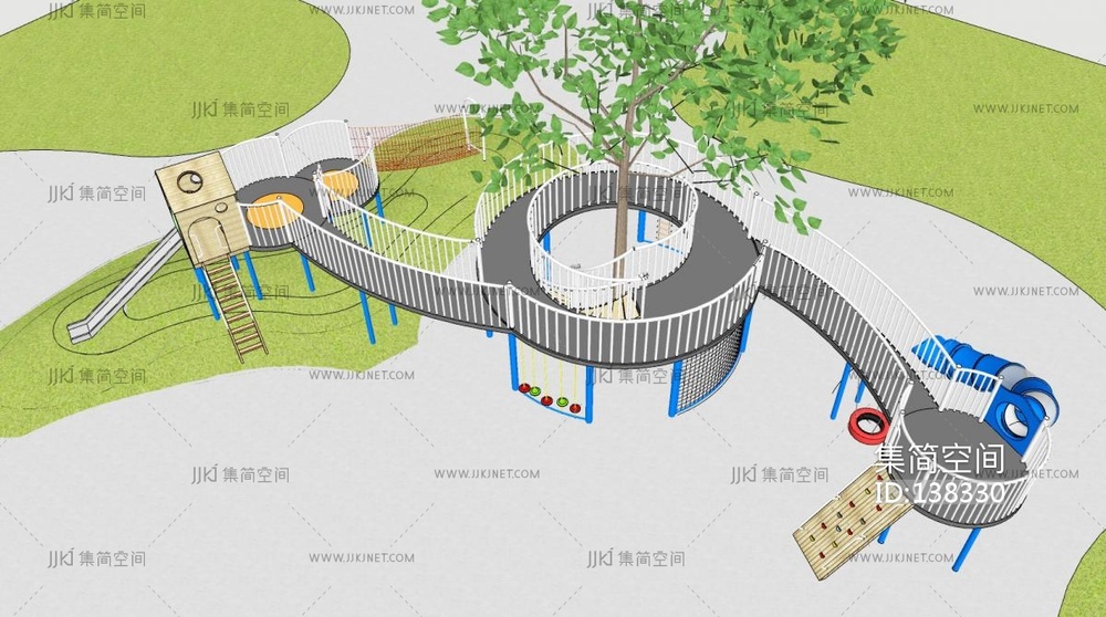 儿童游乐区 小区运动 锻炼 器材 滑滑梯 设计 院子 社区 运动区su草图模型下载