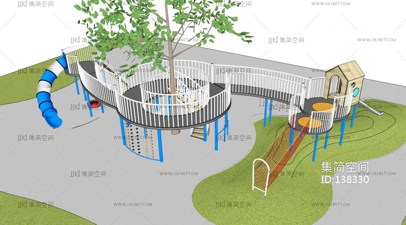 儿童游乐器材,树屋,滑梯,活动区su草图模型下载