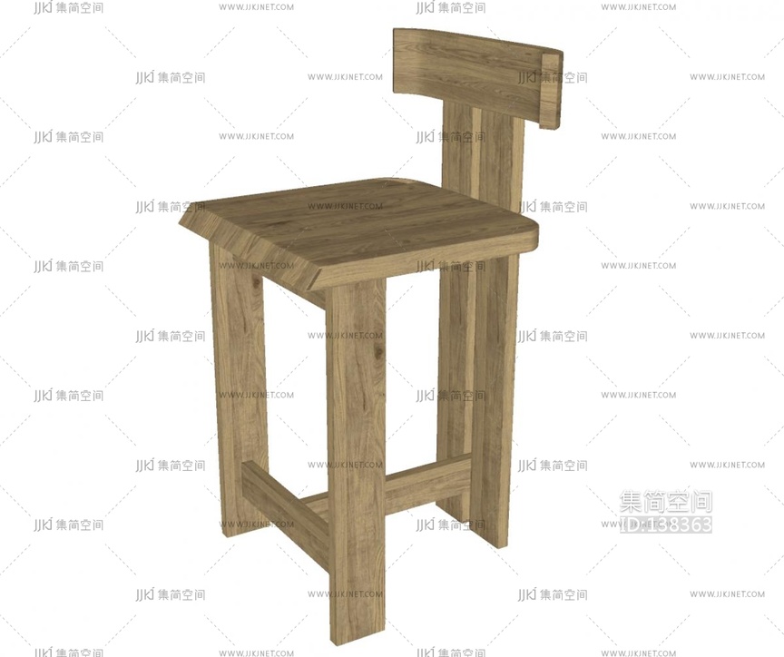 现代吧椅_吧台椅吧凳高脚凳_实木靠背吧台椅SU模型su草图模型下载