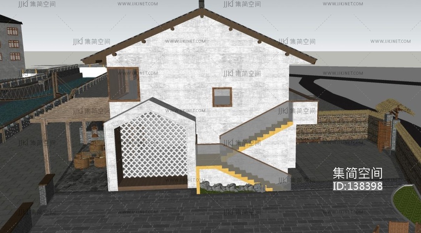 新中式民宿SU模型 su草图模型下载 [模型ID:138398]