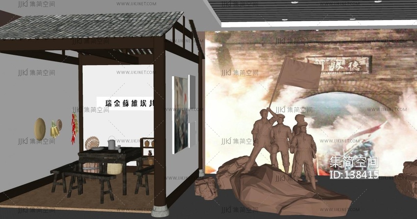现代红色文化展厅SU模型 su草图模型下载 [模型ID:138415]