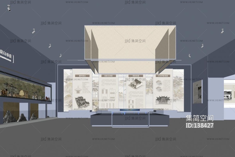 新中式文化展厅SU模型 su草图模型下载 [模型ID:138427]