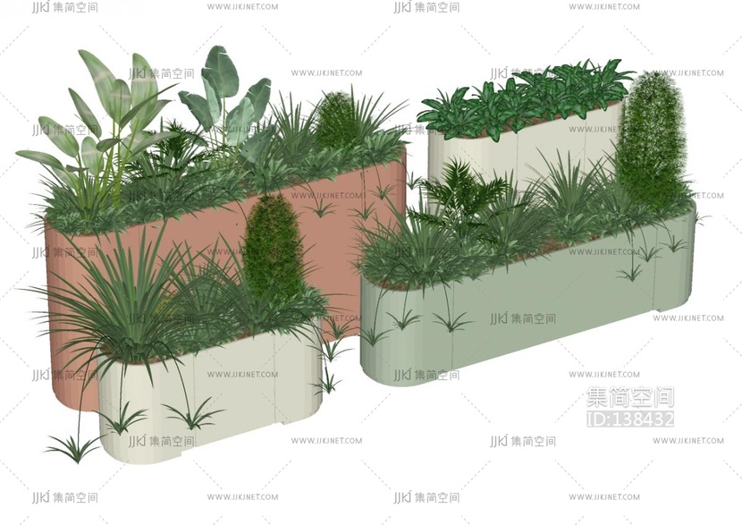 植物组合_花池_户外花箱SU模型su草图模型下载