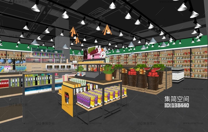 现代生鲜超市SU模型 su草图模型下载 [模型ID:138440]