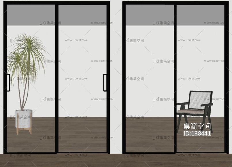 现代玻璃推拉门SU模型 su草图模型下载 [模型ID:138441]