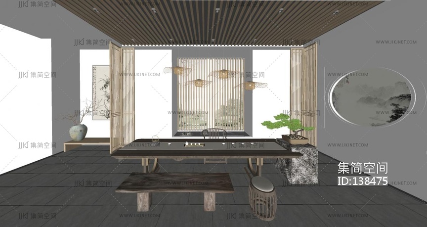 新中式茶室SU模型 su草图模型下载 [模型ID:138475]
