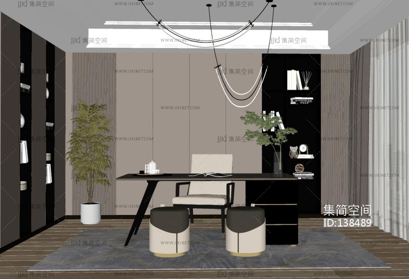 现代家居书房SU模型 su草图模型下载 [模型ID:138489]
