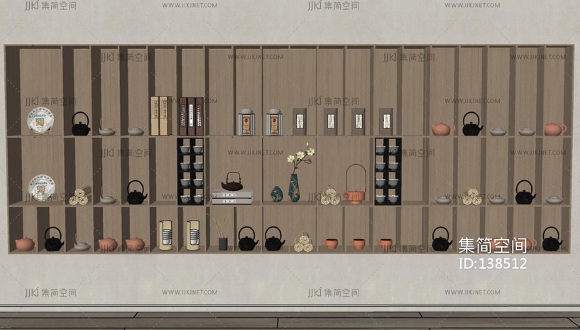 03-新中式茶具_茶叶_茶杯_茶饼_装饰柜_展示柜su模型su草图模型下载