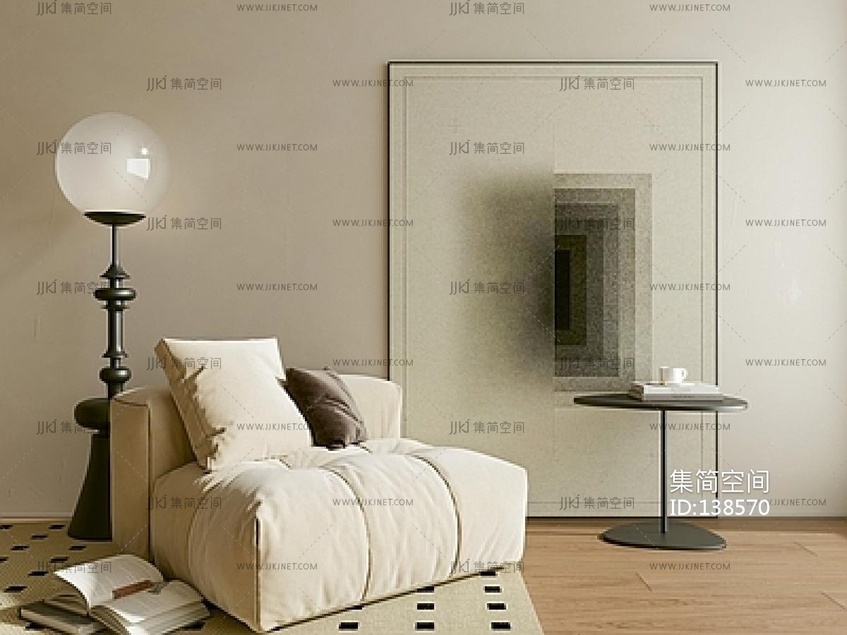 05现代懒人沙发_米灰色懒人沙发su模型su草图模型下载