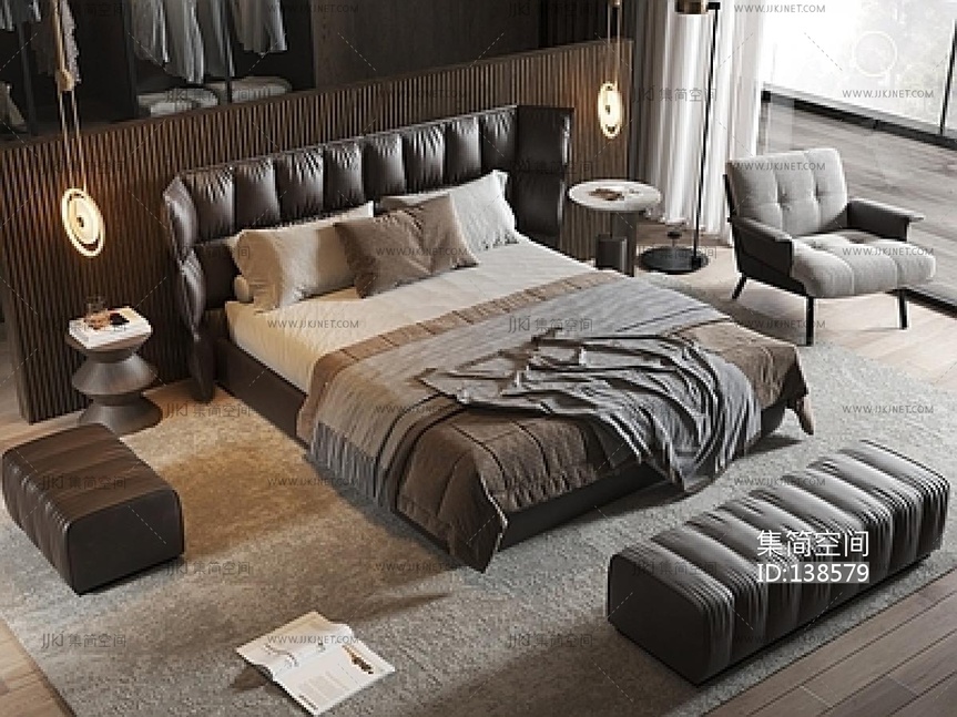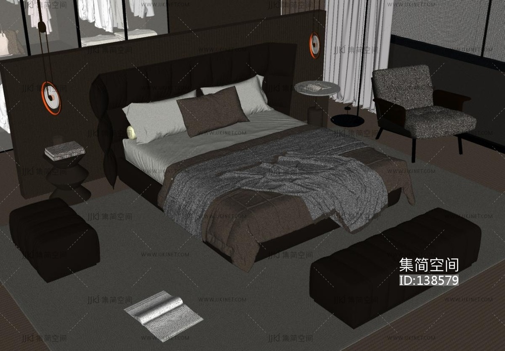 现代双人床SU模型 su草图模型下载 [模型ID:138579]