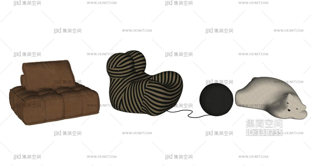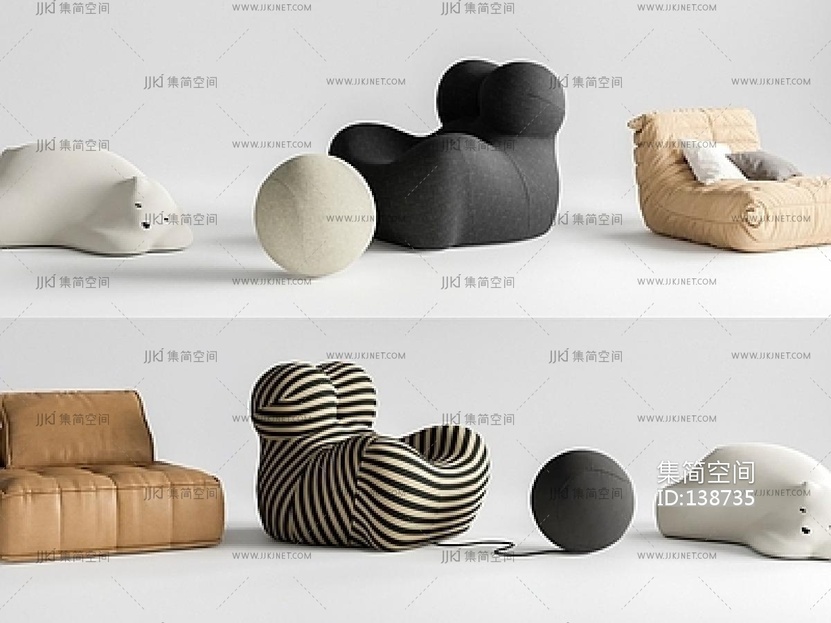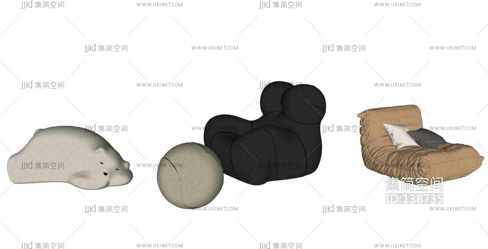 现代懒人沙发 趴趴熊,沙发组合 SU模型 su草图模型下载 [模型ID:138735]