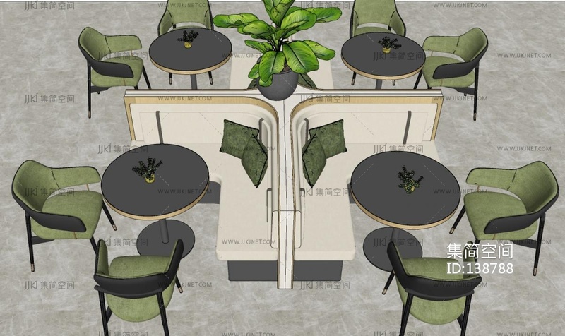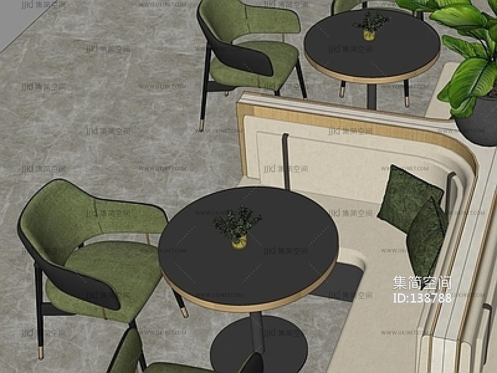 现代卡座沙发,餐厅餐桌椅SU模型 su草图模型下载 [模型ID:138788]