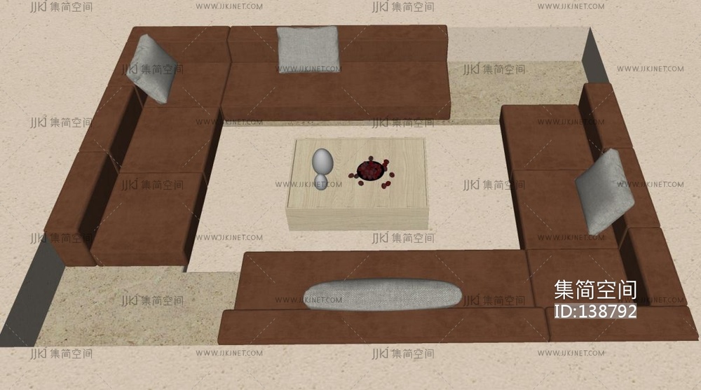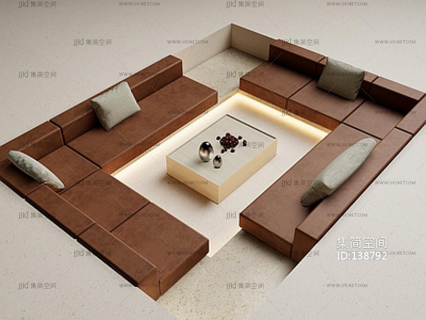现代下沉式卡座沙发,茶几SU模型 su草图模型下载 [模型ID:138792]