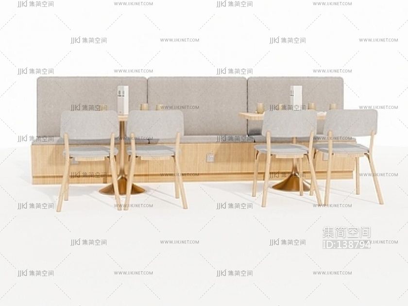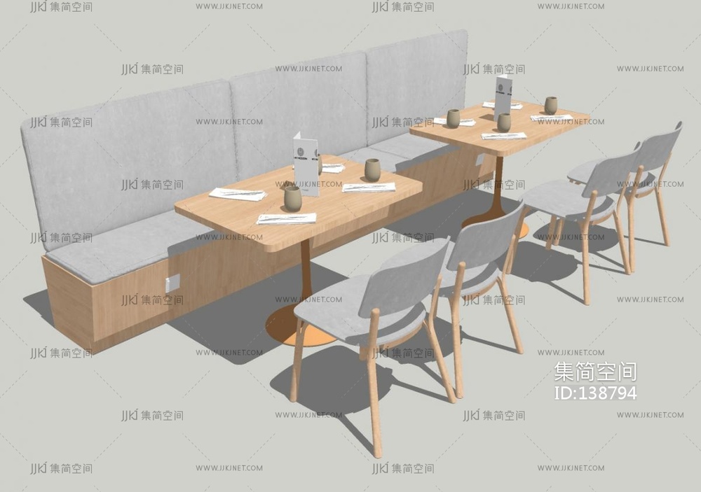 现代卡座沙发,餐厅桌椅SU模型 su草图模型下载 [模型ID:138794]