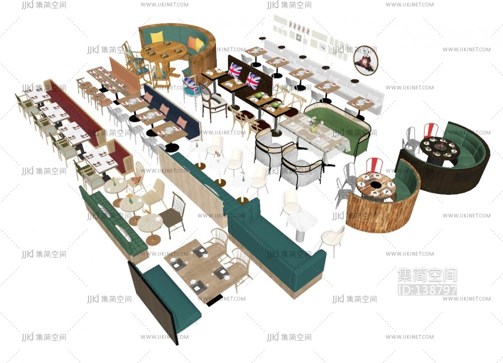 餐厅卡座SU模型su草图模型下载