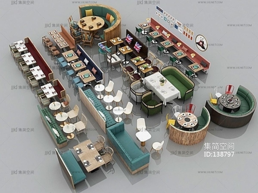现代卡座沙发,餐厅餐桌椅组合SU模型 su草图模型下载 [模型ID:138797]