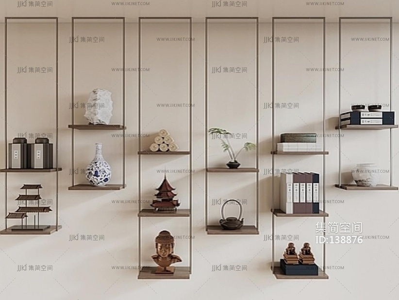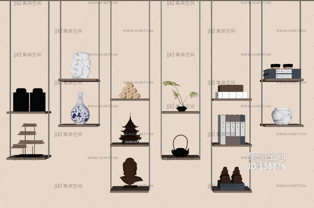 新中式置物架,摆件SU模型 su草图模型下载 [模型ID:138876]