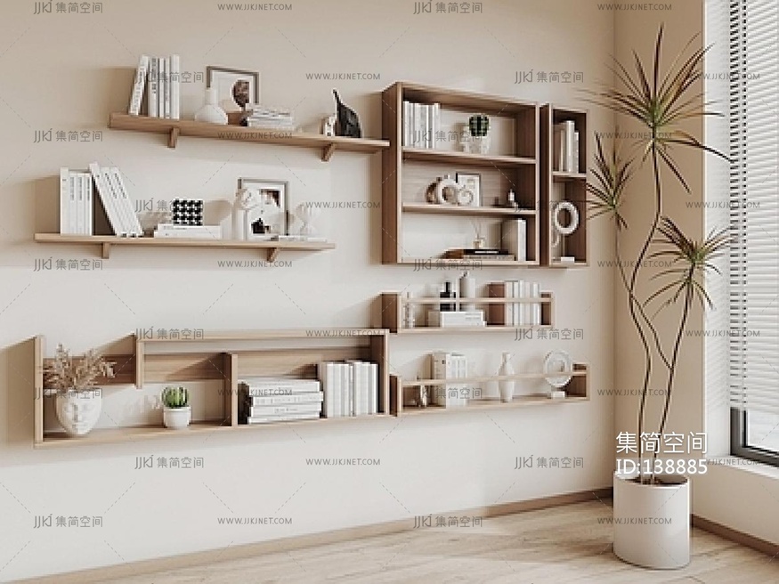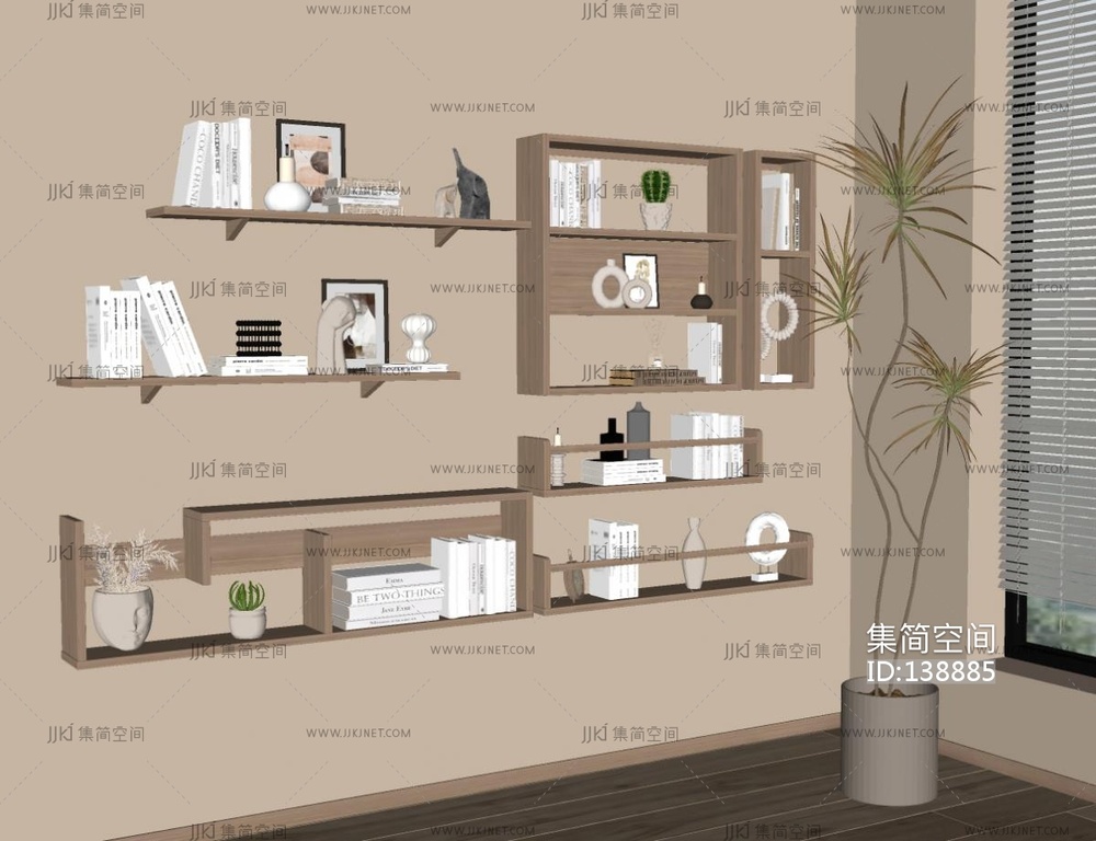 现代置物架_现代墙面置物架_书架_壁挂式SU模型su草图模型下载
