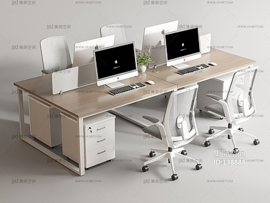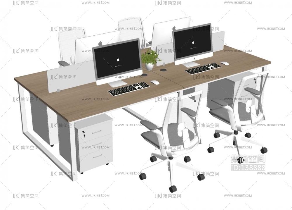 现代办公桌椅,职员工位SU模型 su草图模型下载 [模型ID:138888]
