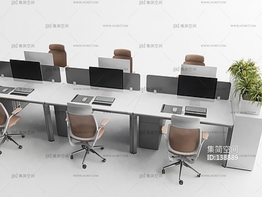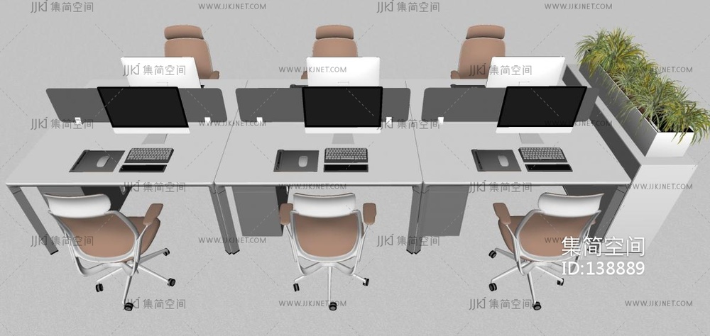现代办公桌椅组合,工位SU模型 su草图模型下载 [模型ID:138889]