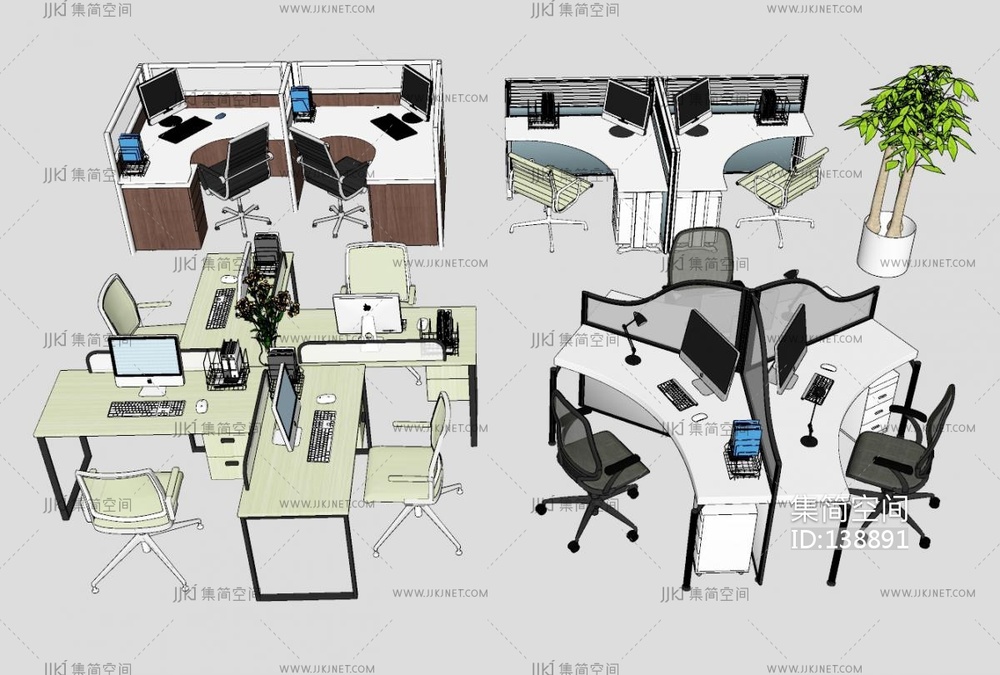现代开放办公区员工工位SU模型 su草图模型下载 [模型ID:138891]
