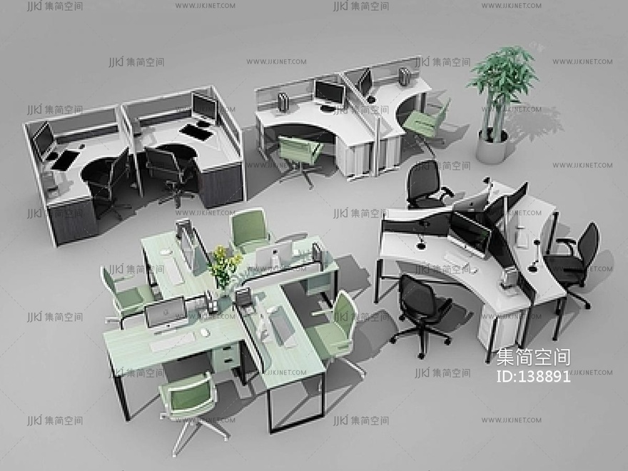 办公桌_职员桌_办公位SU模型su草图模型下载