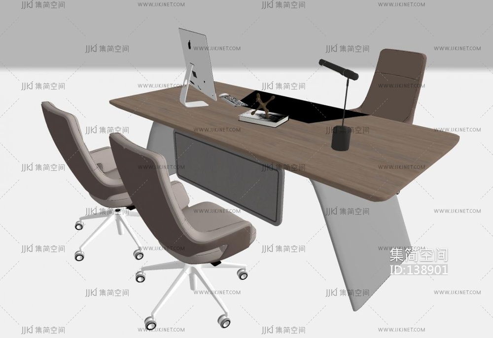 现代办公桌椅,班台SU模型 su草图模型下载 [模型ID:138901]