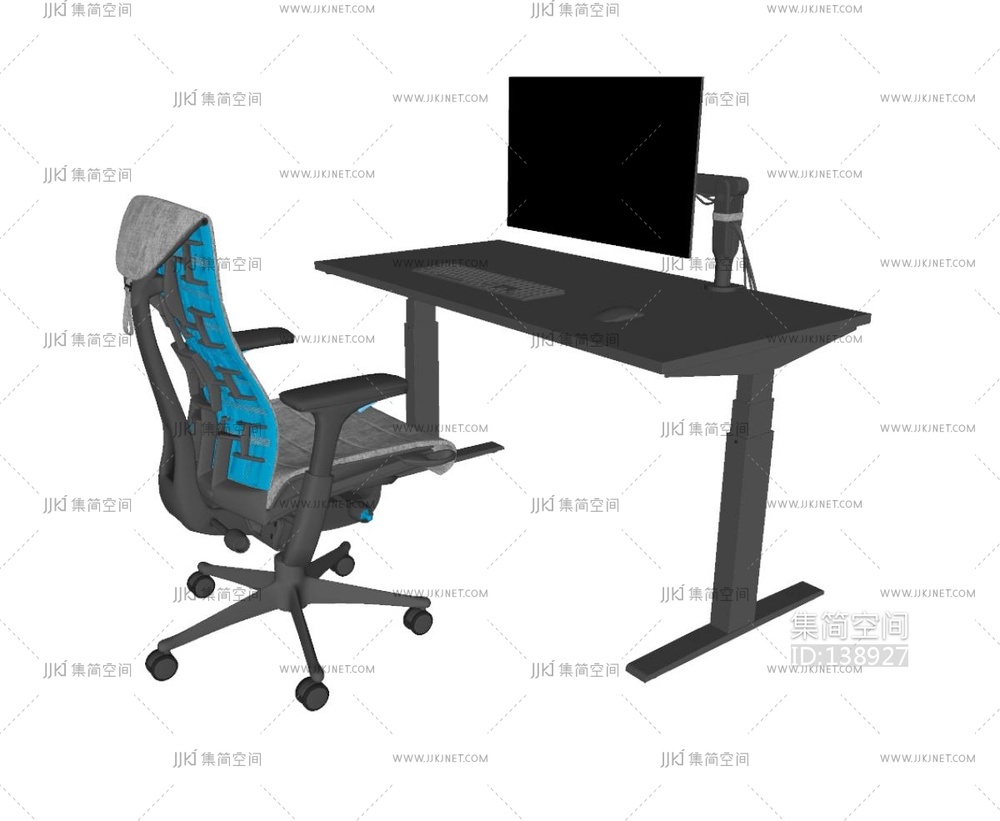 现代简约书桌椅 SU模型su草图模型下载