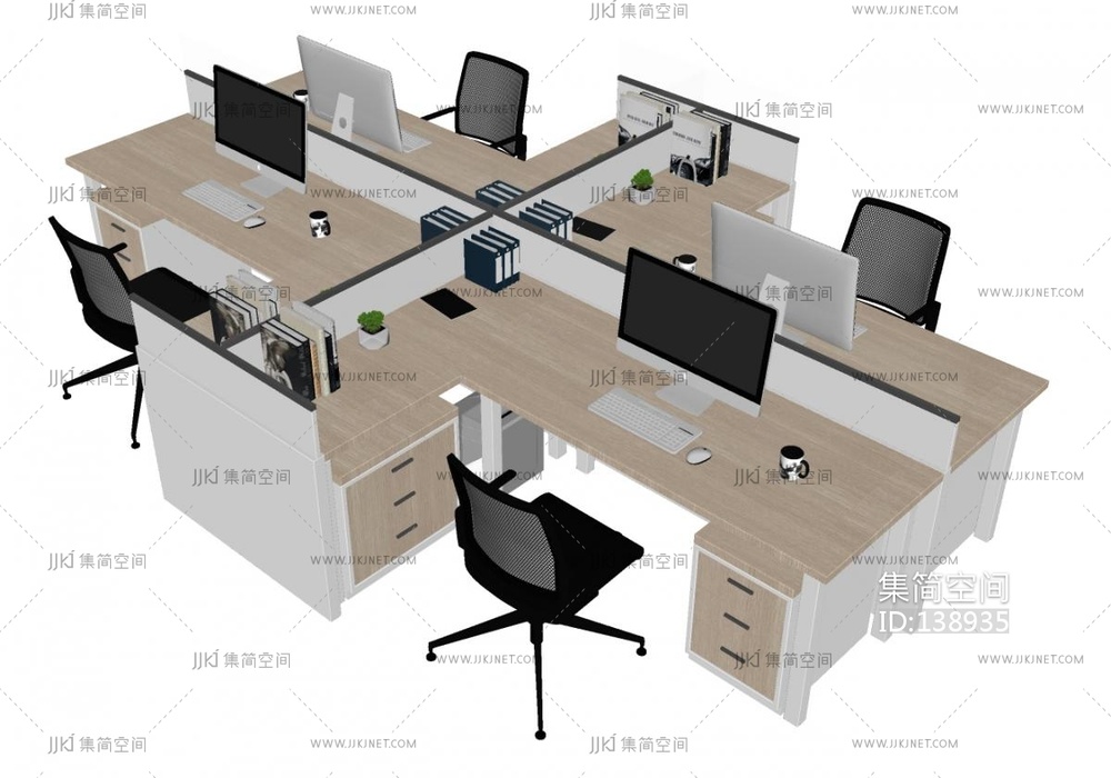 办公桌_职员桌_办公位SU模型su草图模型下载
