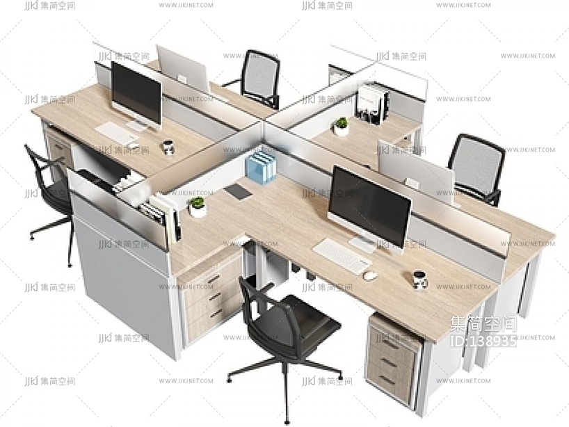 现代办公桌椅,员工工位SU模型 su草图模型下载 [模型ID:138935]