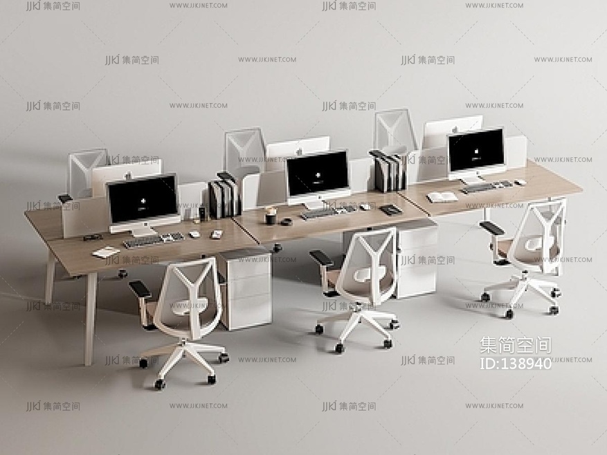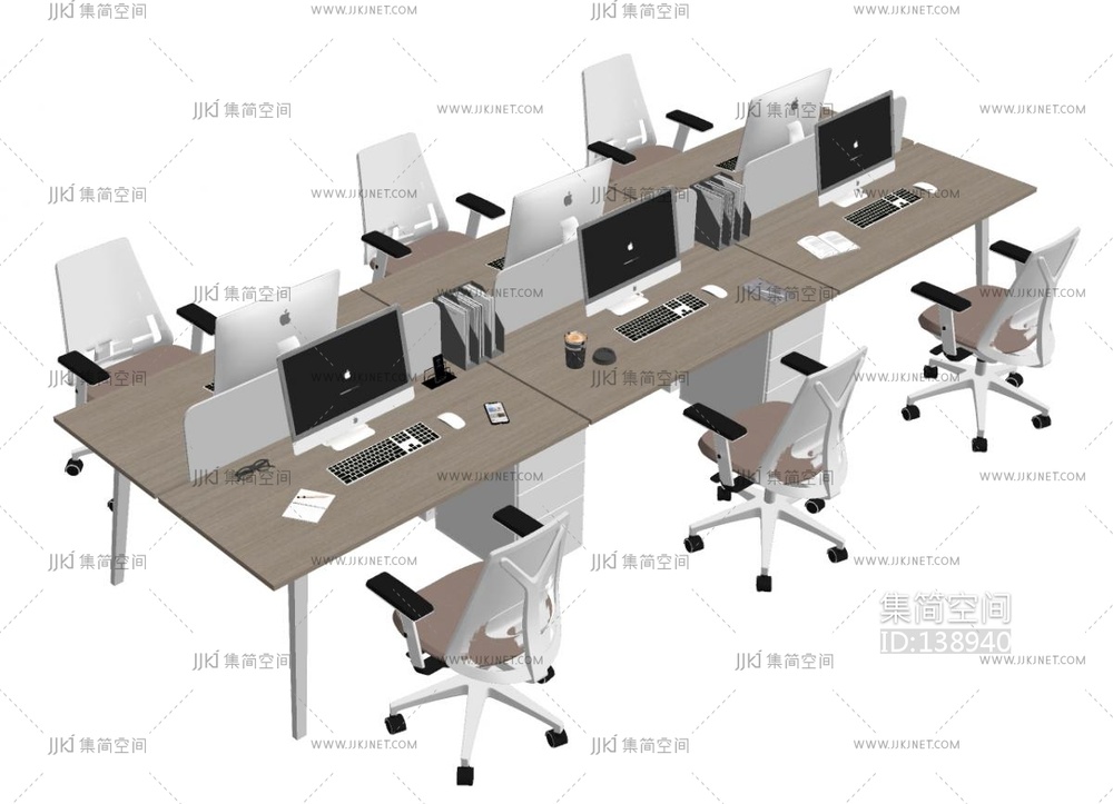 办公桌_职员桌_办公位SU模型su草图模型下载