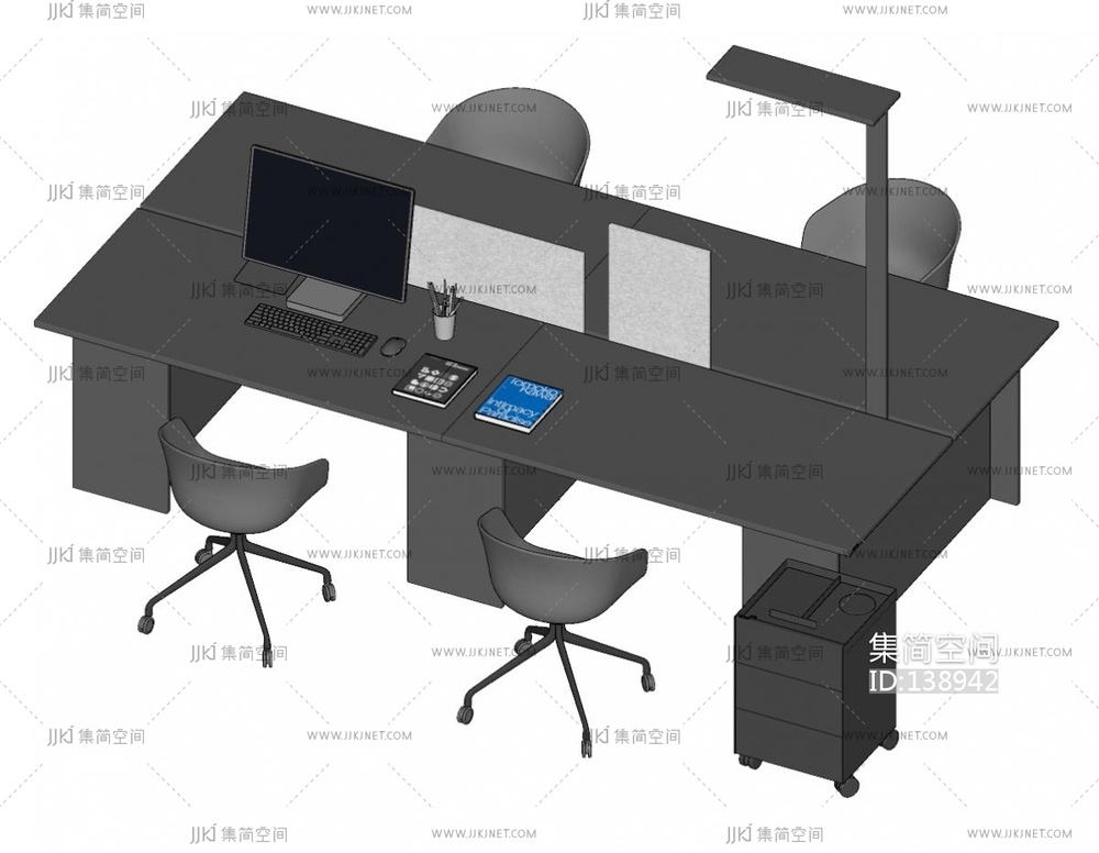 现代员工工位,办公桌办公椅,su草图模型下载