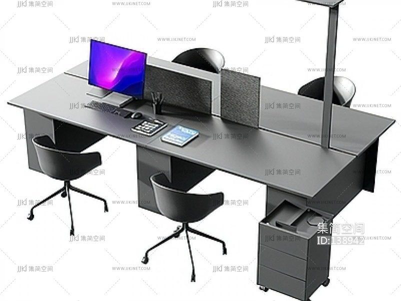办公桌_职员桌_办公位SU模型su草图模型下载