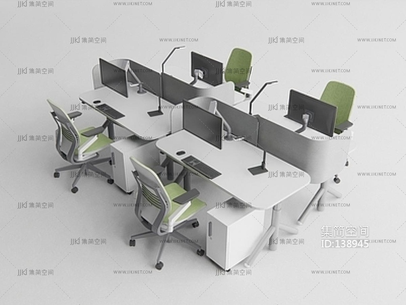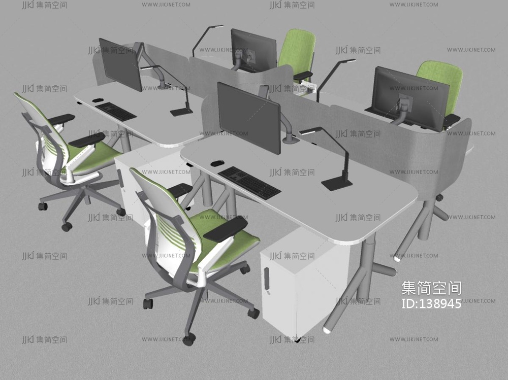 办公桌_职员桌_办公位SU模型su草图模型下载